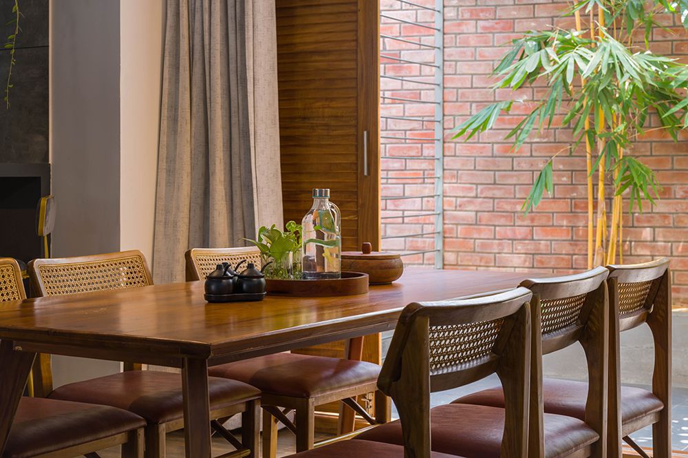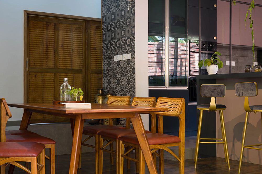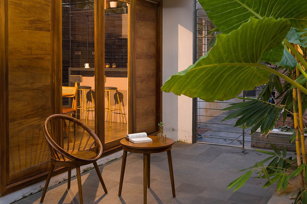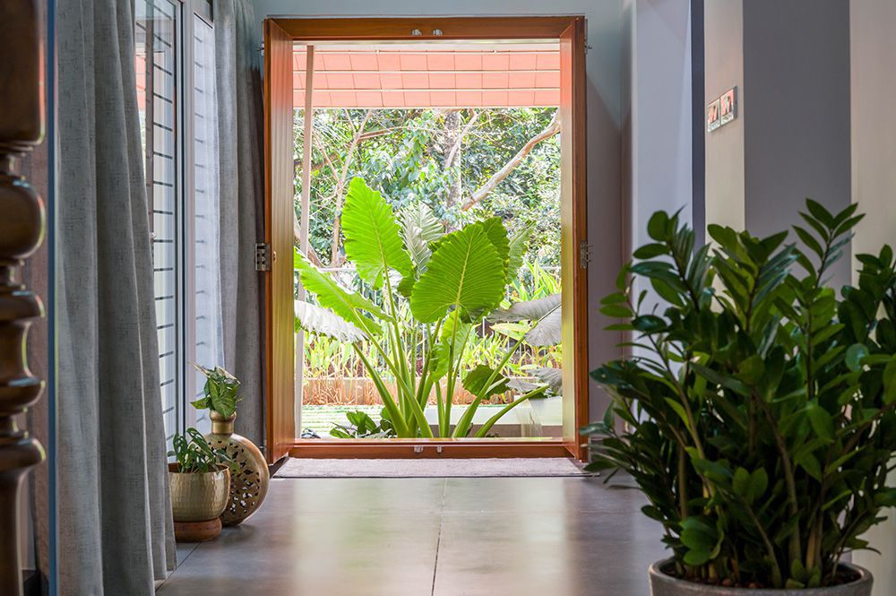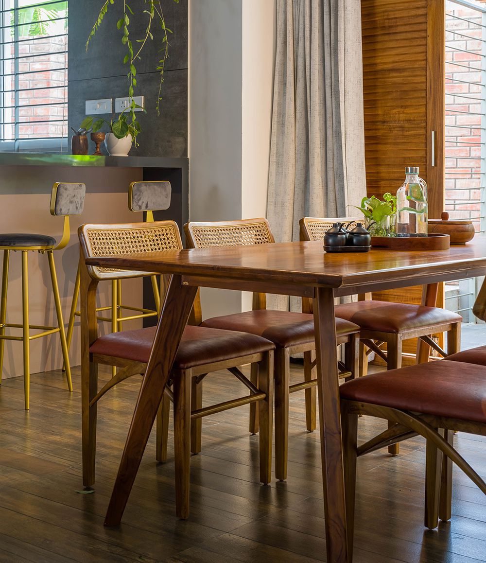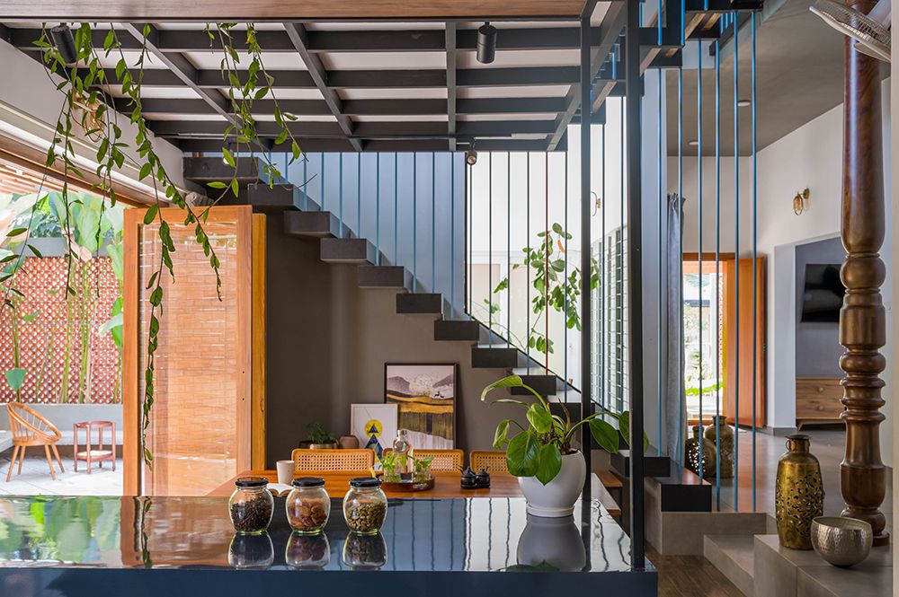 The exterior of the Pokottur residence is a harmonious blend of traditional and contemporary elements. The facade features sloping roofs, wooden accents, and large windows that allow natural light to flood the interiors. Traditional Kerala architectural elements are balanced with modern finishes, creating a visually striking yet cohesive appearance. The design not only enhances the curb appeal but also reflects the rich cultural heritage of the region.