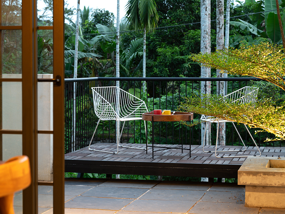Alam's exterior design reflects a contemporary style with clean lines and minimalist details. The use of local materials and a neutral color palette helps the house blend seamlessly with its natural surroundings. Large windows and open spaces are key features of the design, allowing for unobstructed views of the paddy field and the mountains.
